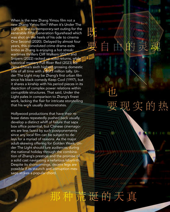 Magazine feature for a film review of 'Under the Light'.